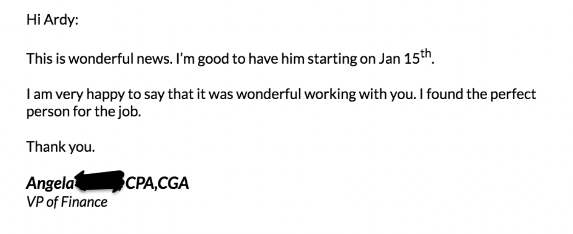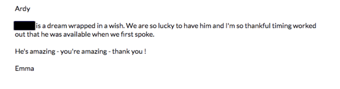 From the start I knew Ardy and was different. We filled the position in under 3 weeks and the new candidate is working out very well.